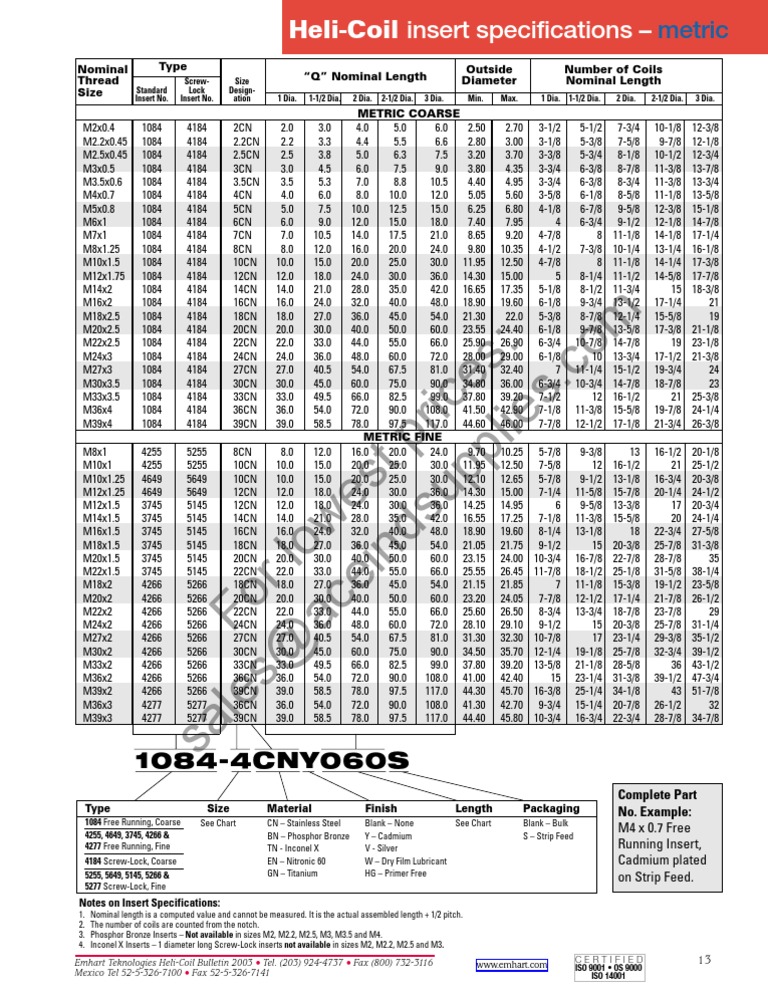 Helical Coil Insert Drill Chart at Cecile Damon blog